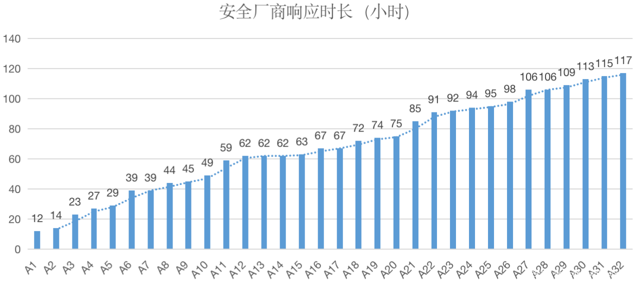 12个小时后,第一个安全厂商发起了针对该漏洞的安全检测行为。对安全厂商的检测行为统计,发现安全厂商平均在漏洞爆发后69个小时内发起安全检测行为。