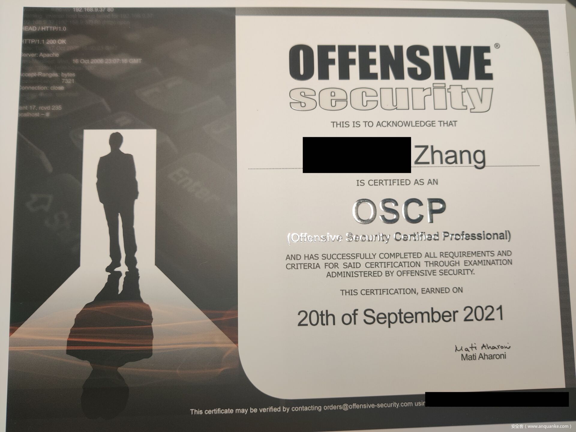 了解到OSCP是在大一和会长的一次聊天,上网搜集了信息之后觉得这个证书虽然国内的知名度不是很高,但全实操的考试让他的含金量远远超过国内的其他割韭菜证书,比较值得。并且看到那张帅气的证书的时候,更坚定了我要考的决心。