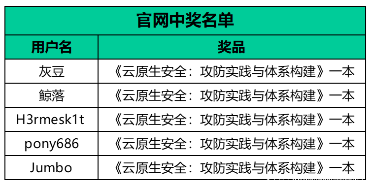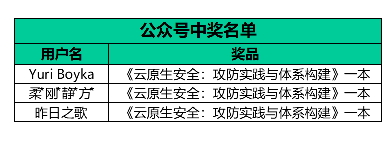 小安会抽取3名用户,各赠送《云原生安全:攻防实践与体系构建》一本。