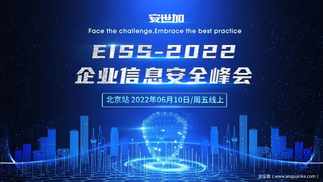 2022年06月10日,由安世加主办的“EISS-2022企业信息安全峰会之北京站”在线上成功举办。本次峰会是EISS北京站的连续第五届,也是EISS系列峰会的第十四届。峰会以”直面信息安全挑战,创造最佳实践案例“为主题,吸引了超过1000位来自于各行业的企业信息安全负责人、安全专家报名参加。