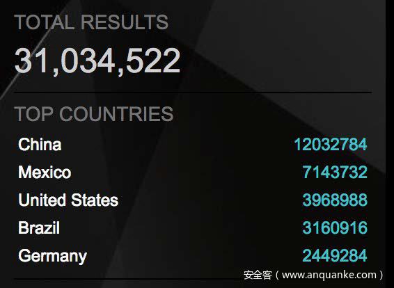 通过统计 , 我们发现一个有趣的情况 , 在路由器暴露全球分布上 ,中国独占鳌头总量超过 1000 万。