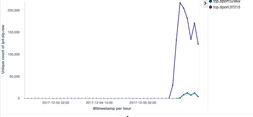 从 12 月 05 日开始可以看到 263250 个不同的 IP 在扫描目标端口: