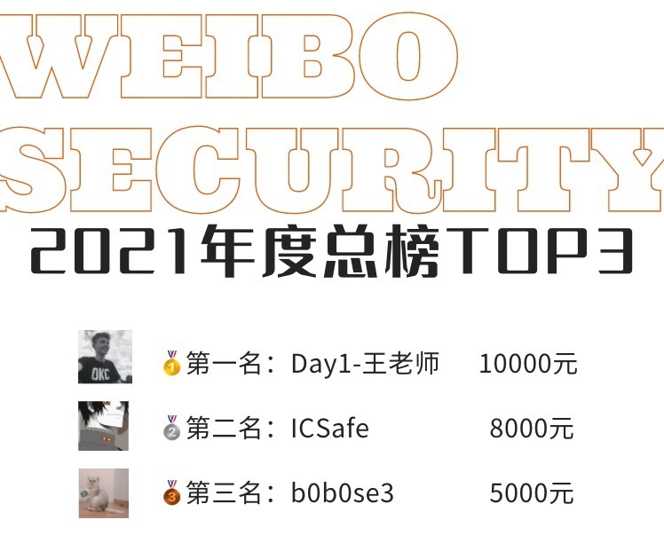 微博安全除了对2021年榜单TOP3进行现金奖励外