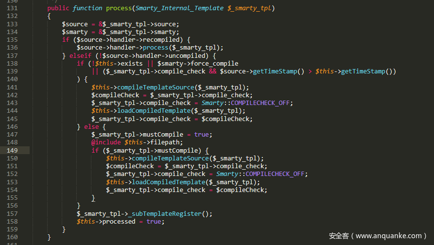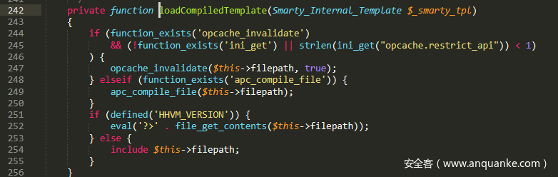 这里的 php 文件甚至不用我们手动包含,在 process 方法中有一处 loadCompiledTemplate