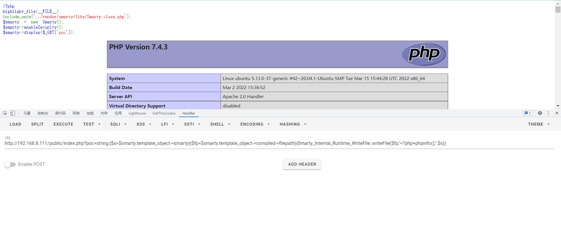 这里利用了 fileputcontents 来写文件,可以看到我们的 SMARTYCOMPILEDIR