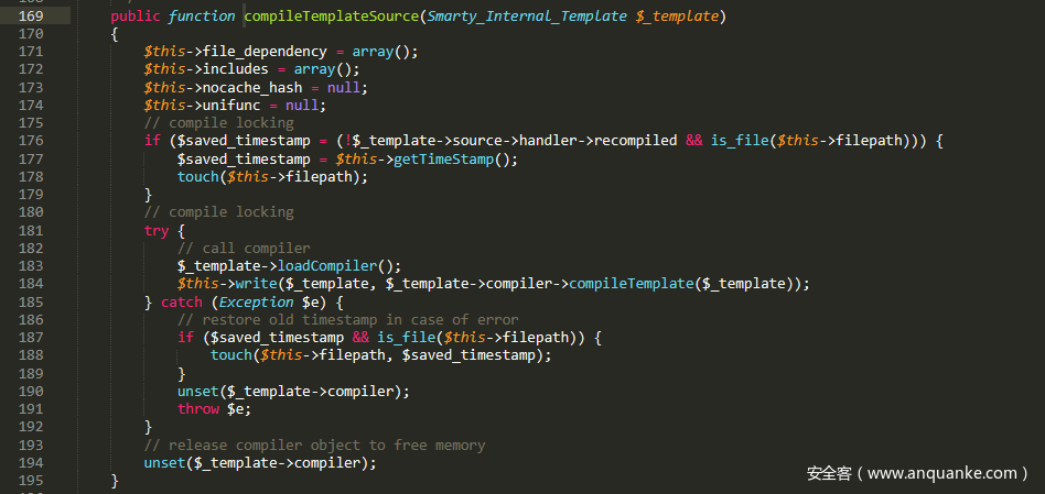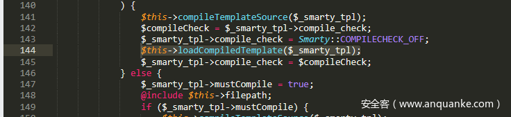 跟进这里的 $this->compileTemplateSource($_smarty_tpl)