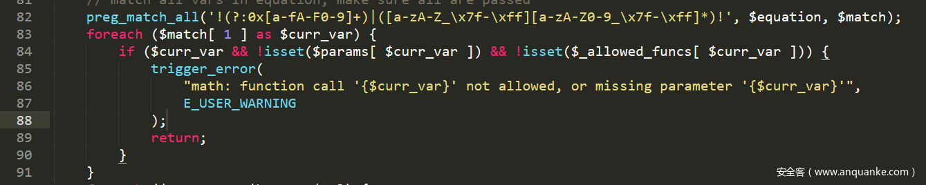 在其中用类似白名单的方式将数学函数写进了数组,只允许这些方法通过,同时还严格过滤了 $,以及反引号