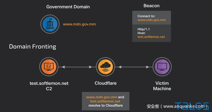 近日,有安全团队发现一恶意活动,不仅利用域前置隐藏命令、控制流量,还通过缅甸政府的合法域,将通信路由更改成攻击者控制的服务器,以逃避检测。