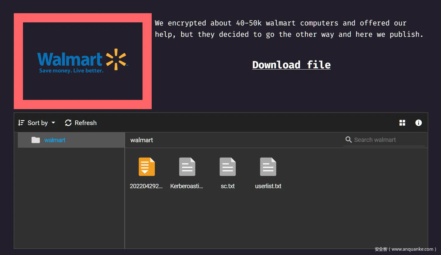 根据他们发给安全媒体的声明,沃尔玛安全团队全天候监控系统,但并未观测到任何异常。与此相对,前几天Yanluowang勒索组织在官方数据泄露站点新增了沃尔玛数据,宣布成功攻击沃尔玛并加密近5万台设备。如果勒索组织所言不虚,那么早在一个月前他们的攻击就进入了尾声,也没有窃取很多敏感数据只是加密了设备并要求支付5000万美元赎金。由于一直没有收到沃尔玛的反馈,此次便放出部分数据作为威胁的筹码。考虑到黑客手中并没有足以卖出高价的敏感数据,沃尔玛很可能会选择忍气吞声吃下五万台加密设备的亏,反正用户数据也没丢就当没发生过。有安全媒体就此事咨询了沃尔玛但还未收到回复。[阅读原文]