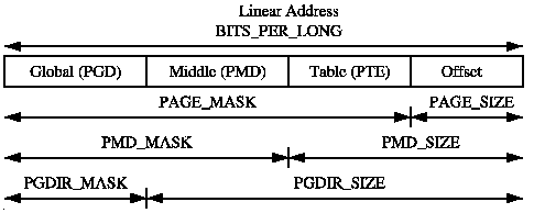 通常linux的内存页为4kb大小,为了满足系统和程序的特殊需求,linux允许2M和1G大内存页。常规的虚拟地址翻译如图3.1所示,PGD,PMD均作为页表目录,当启用大内存页时,PMD不再表示页表目录而是和PTE合并共同代表页表项(PTE)。