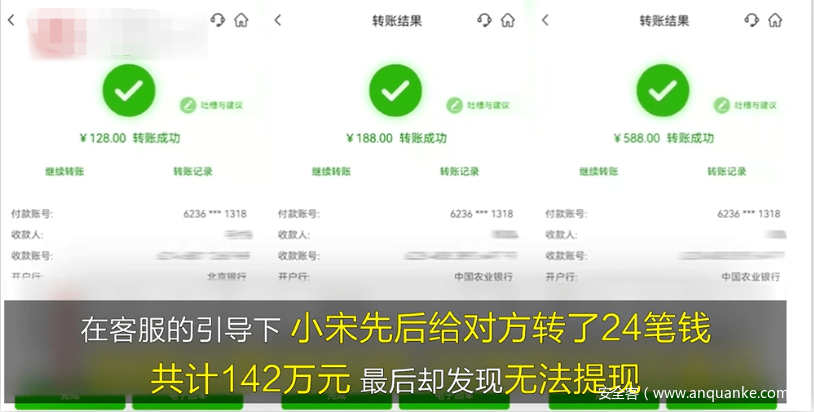 先后转账24笔,共计142万元