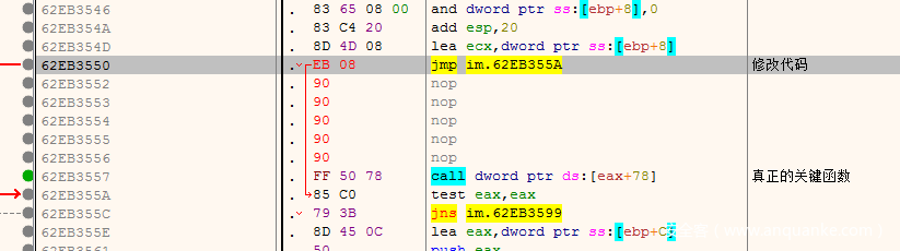 测试附近的每一个CALL,让其直接返回,可以找到起作用的CALL。
