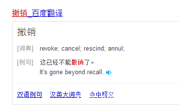 由于我们要找的撤销功能,那我们要把撤销相关的英文、中文单词都找出来。这里使用百度翻译可以查看撤销的英文:
