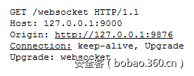 该脚本通过WebSocket握手建立WebSocket连接。此过程从客户端向服务器发送常规HTTP请求开始。此请求中包含upgrade请求头,通知服务器客户端希望建立WebSocket连接。