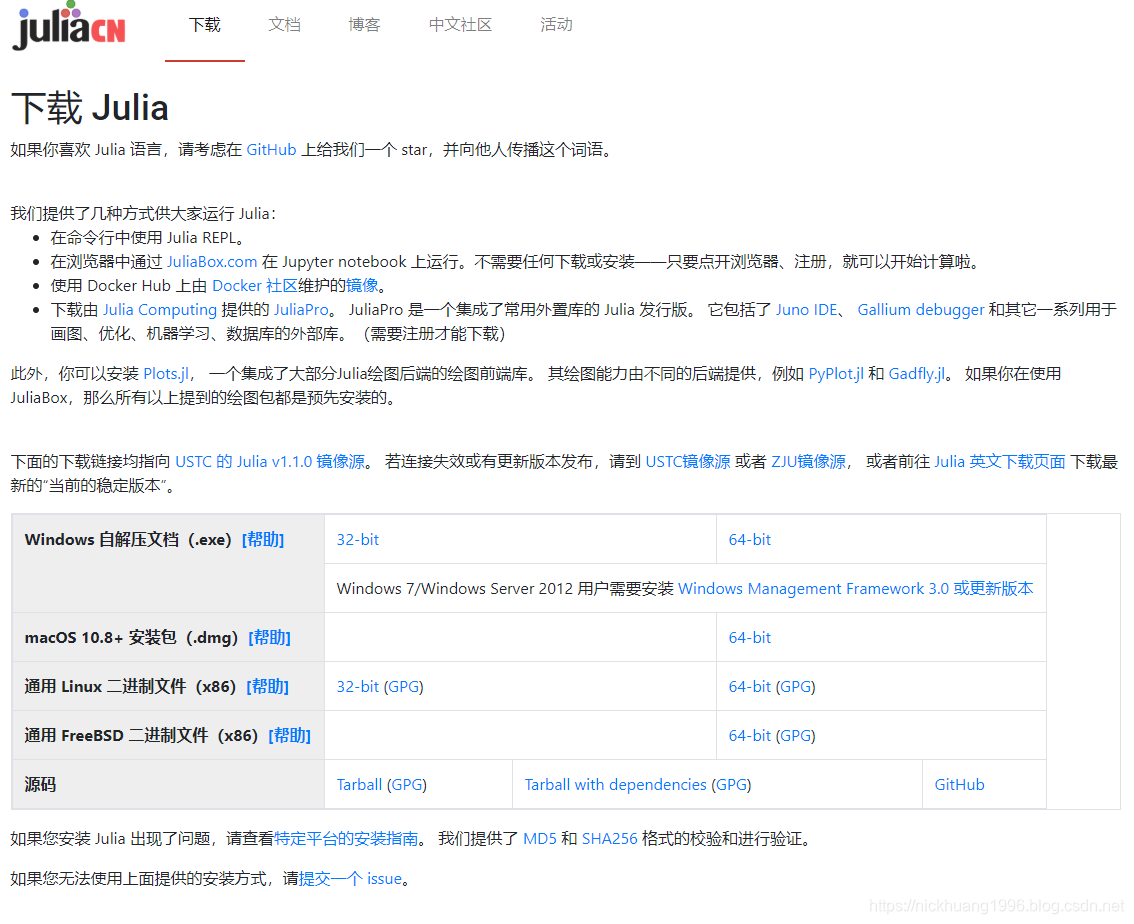 1.Julia中文社区:https://cn.julialang.org/downloads/