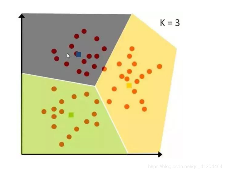 给一个新的数据时,离它最近的 k 个点中,哪个类别多,这个数据就属于哪一类。