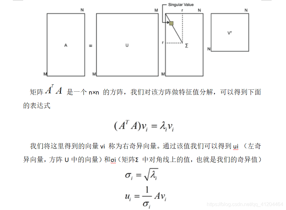 在线性代数中我们学过矩阵(在这里的矩阵必须是n×n的方阵)的特征分解,矩阵A和特征值、特征向量之间的关系如下