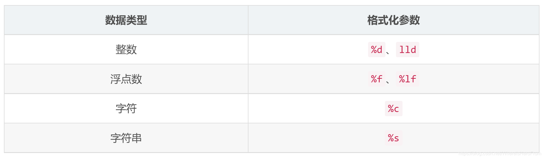 - 其它数据类型,例如浮点数、字符、字符串的格式化参数类似