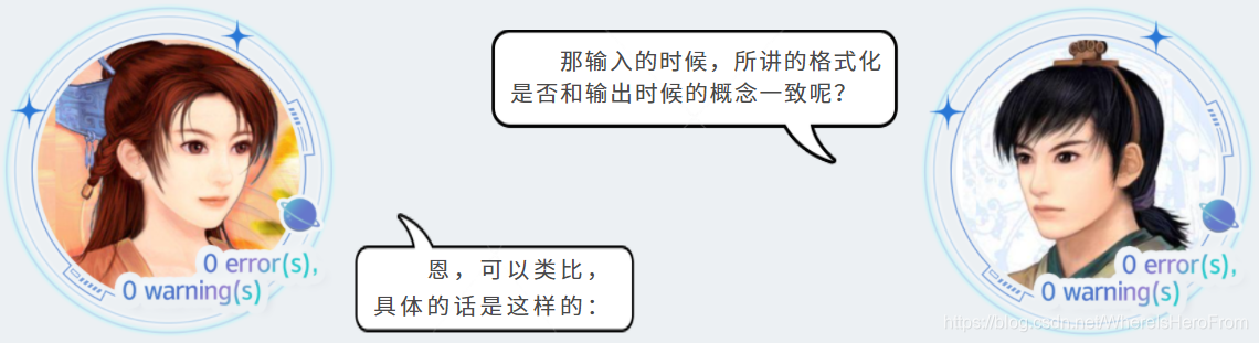 - 我们在进行输入的时候,其实都是一个字符串,但是这个字符串被输入后有可能当成整数来用,也有可能还是字符串,这个计算机自己是不知道规则的,需要写代码的人告诉它,这个告诉它如何输入的过程就被称为格式化。