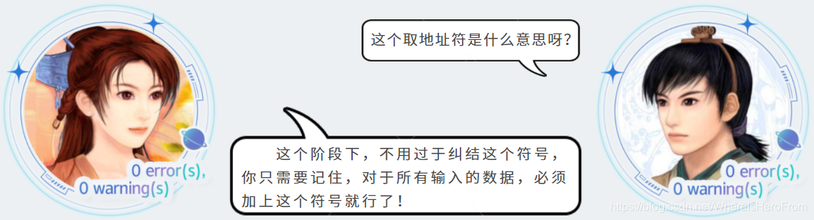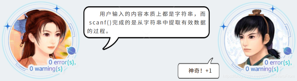 scanf(),而是放入了输入缓冲区中,当我们按下回车键,scanf()才到输入缓冲区中读取数据。如果缓冲区中的数据符合scanf()给定的格式要求,那么就读取结束;否则,继续等待用户输入,或者读取失败。 - 关于输入缓冲区的内容,比较复杂,属于进阶内容,就不在这个章节继续展开啦。