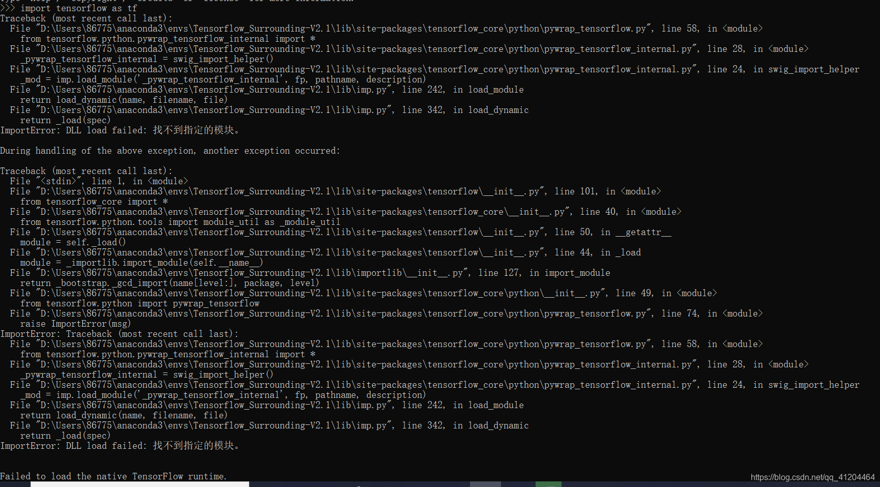 以上都顺利安装,但是在导入Tensorflow时报错:
