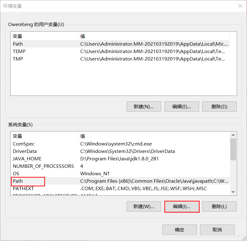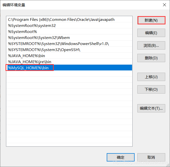 2.4 设置Path环境变量,在系统变量找到Path变量,点击下方的“编辑”按钮,在弹出的编辑窗口选择新建变量值%MySQL_HOME%\bin点击“确认”按钮即可。