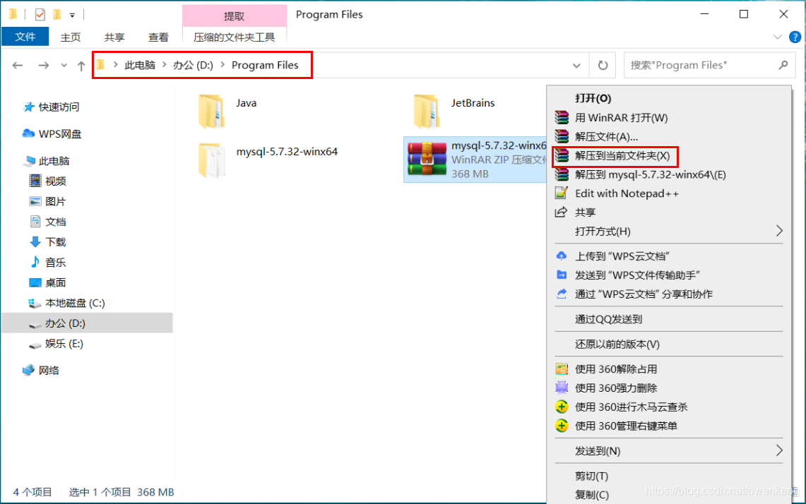 2.1 找到下载的ZIP安装文件解压文件,建议解压到Program Files下面,文件解压后最好不要再移动了。