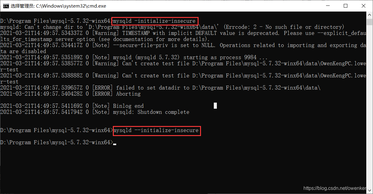 datadir ="D:\\Program Files\\mysql-5.7.32-winx64\\data\\"