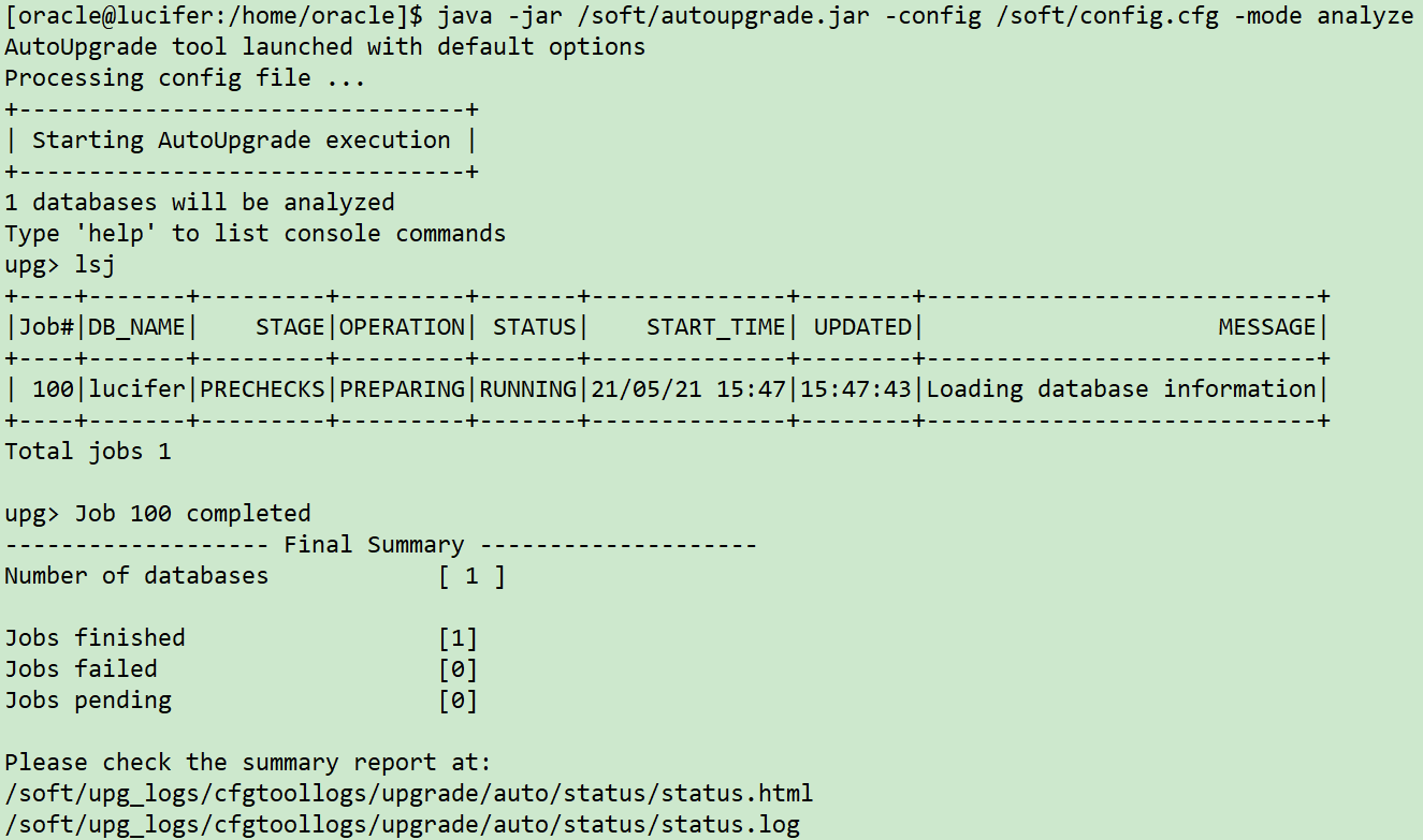 java -jar /soft/autoupgrade.jar -config /soft/config.cfg -mode analyze