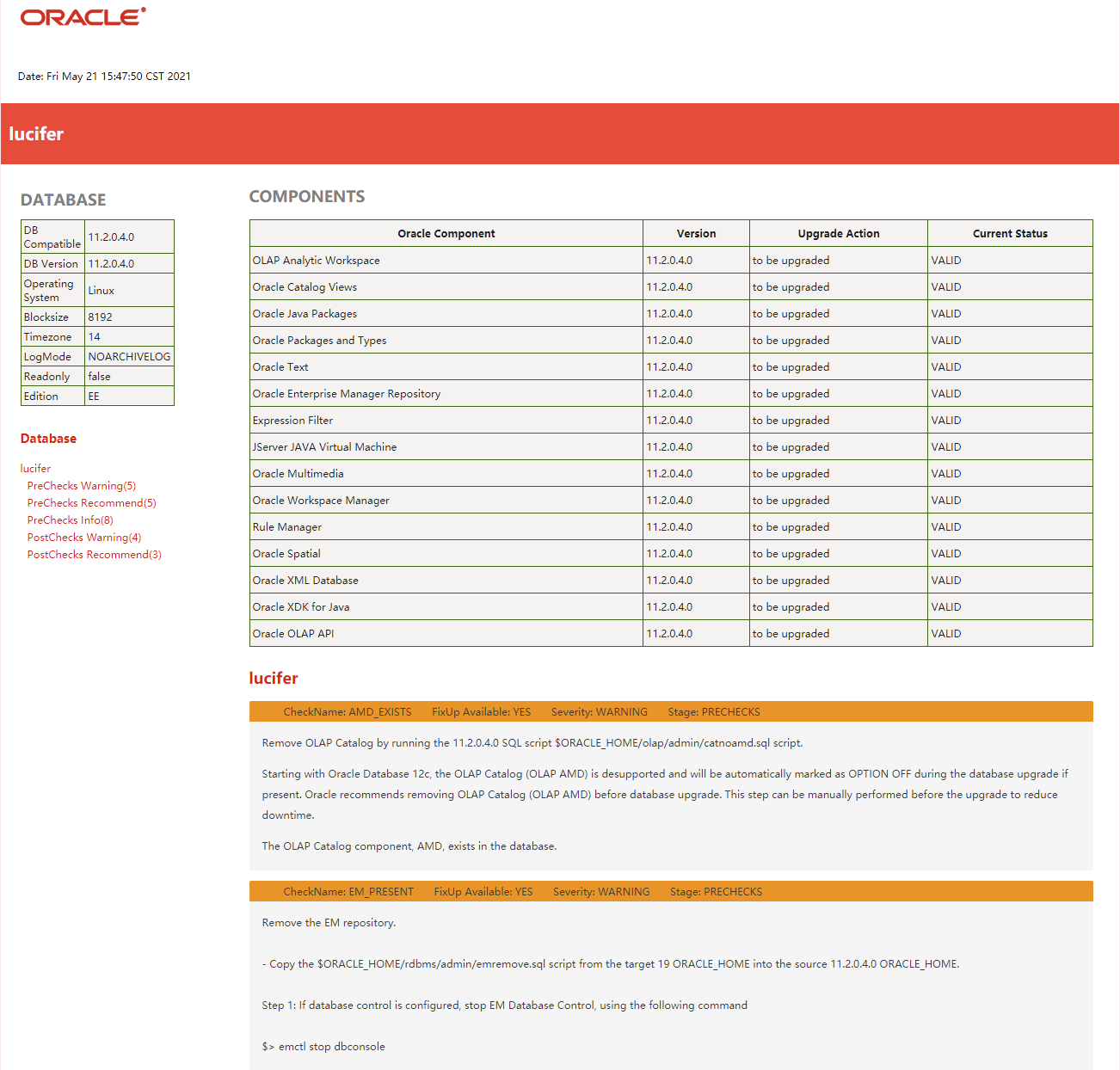 打开网页访问 http://10.211.55.110:8000/lucifer/100/prechecks/lucifer_preupgrade.html