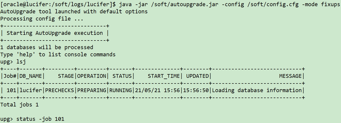 java -jar /soft/autoupgrade.jar -config /soft/config.cfg -mode fixups