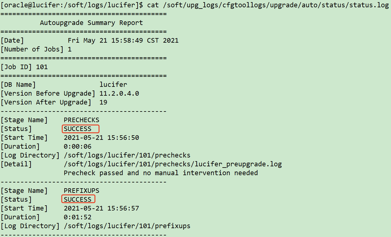 注意:AutoUpgrade工具需要JDK版本1.8以上,11GR2的jdk版本为1.5不支持,因此需要使用19C的ORACLE_HOME中JDK版本。