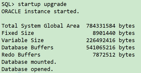 3 目标库打开实例到upgrade模式,均在目标端操作