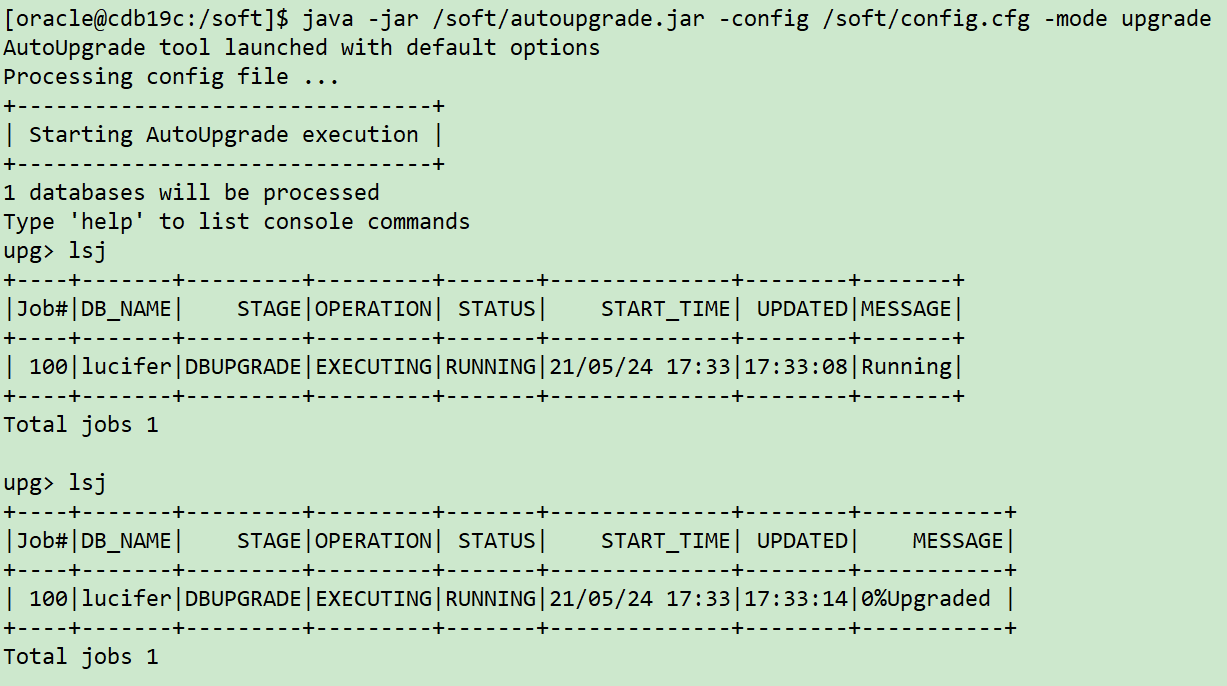 java -jar /soft/autoupgrade.jar -config /soft/config.cfg -mode upgrade