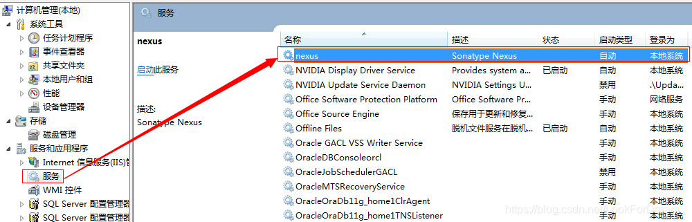 一般都是将nexus安装成windows服务,所以点击install-nexus.bat这个批处理程序将nexus安装成window服务,开机时自动启动。如下图所示: