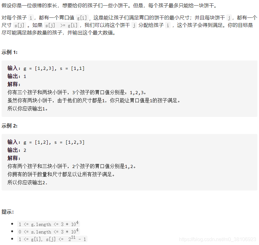 int findContentChildren(int* g, int gSize, int* s, int sSize){