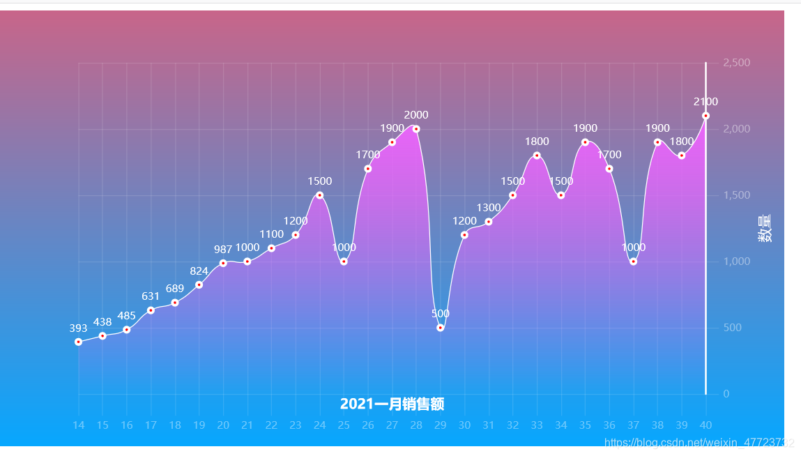 折线图和柱状图一样是我们日常可视化最多的一个图例,当然它的优势和适用场景相信大家肯定不陌生,要想快速的得出趋势,抓住趋势二字,就会很快的想到要用折线图来表示了。折线图是通过直线将这些点按照某种顺序连接起来形成的图,适用于数据在一个有序的因变量上的变化,它的特点是反应事物随类别而变化的趋势,可以清晰展现数据的增减趋势、增减的速率、增减的规律、峰值等特征。