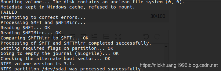 NTFS partition /dev/sda1 was processed successfully.