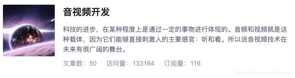 如果想要了解关于音频和视频的基础开发知识,可以参考这篇技术专栏《音视频开发》。该专栏从音频篇、视频篇、协议篇、实战篇等角度分别介绍了一些比较常用的音视频知识和开发技巧,以及实际开发过程中遇到的问题的解决方法。非常推荐大家阅读,另外该专栏还在持续更新中,以后的内容会更加的丰富和充实。