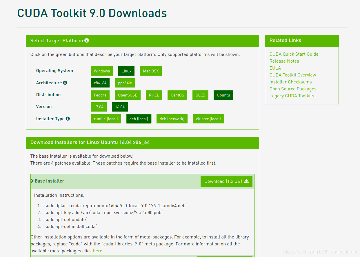 1.博主这里选择9.0版本,CUDA历代版本下载的网址为:https://developer.nvidia.com/cuda-toolkit-archive