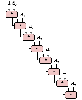 重新结合变换能够减少计算中关键路径上操作的数量,这种方法增加了可以并行执行的操作数量了,更好地利用功能单元的流水线能力得到更好的性能。重新结合后关键路径如下所示。