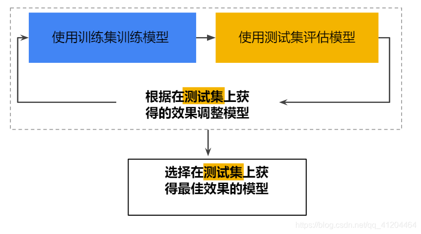 划分为训练集、验证集、测试集方法中,通过测试集调整模型效果,从中不断学习测试集的规律;从而使得测试集和新数据有区别,模型对测试集有些认识了,对新数据还是完全不认识的情况下预测的