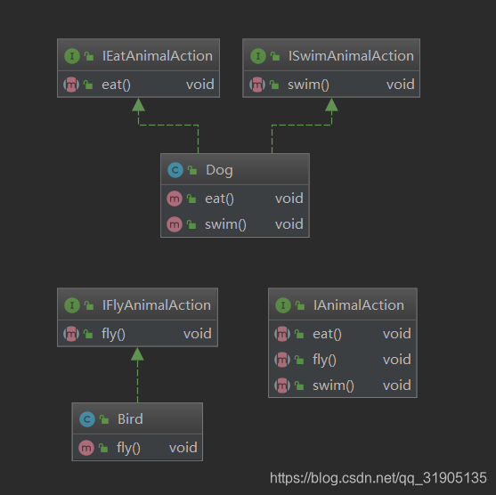 com.dzx.design.principle.interfacesegregation 包下代码: 接口隔离原则