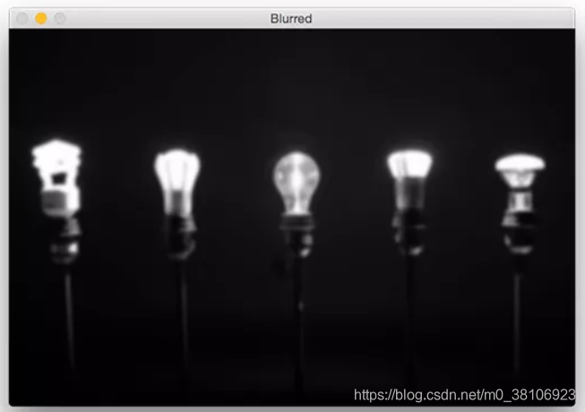 第3步:阈值化处理,为了显示模糊图像中最亮的区域,将像素值p >= 200,设置为255(白色),像素值< 200,设置为0(黑色),实现代码如下所示: