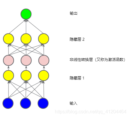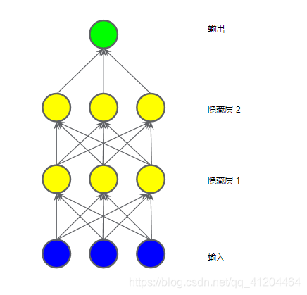 由输出层、隐藏层1、隐藏层2、输出层组成;在输入层和输出层之间的都可以称为隐藏层。: