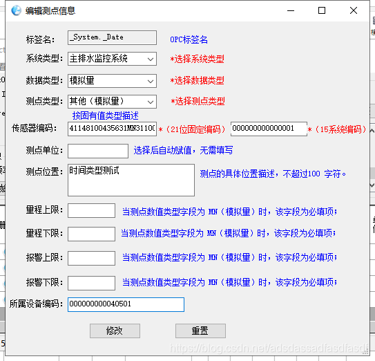 选择对应的系统类型、数据类型、测点类型可以自动生成符合矿安〔2021〕2号的传感器编码。