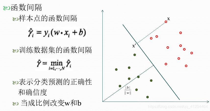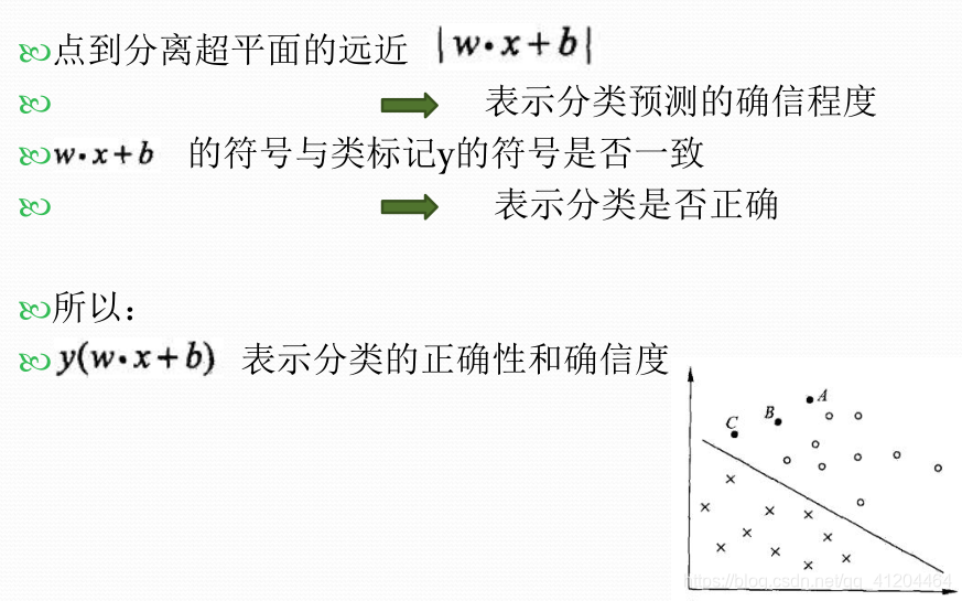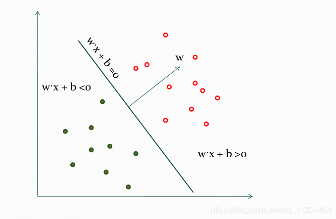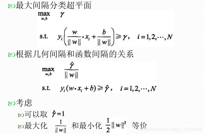 选取一条线(中间w·x+b=0),使得分开两边不同的点;同时使点到这条线的距离为最大值。