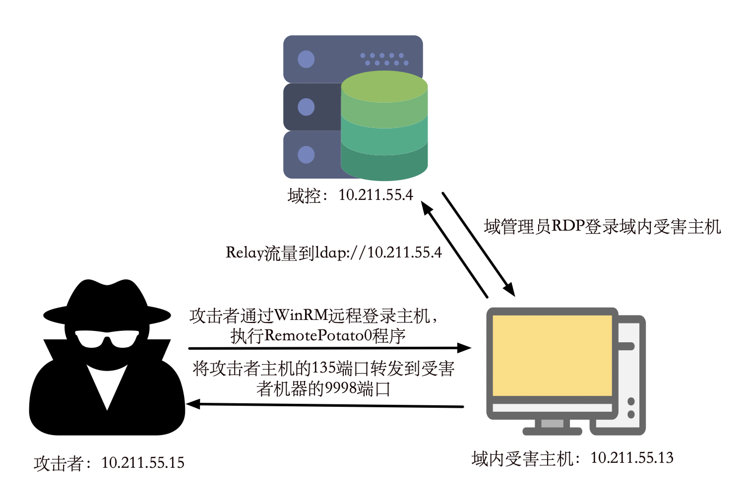 首先,在攻击机上执行如下命令,将本地135端口的流量转发到10.211.55.13的9998端口